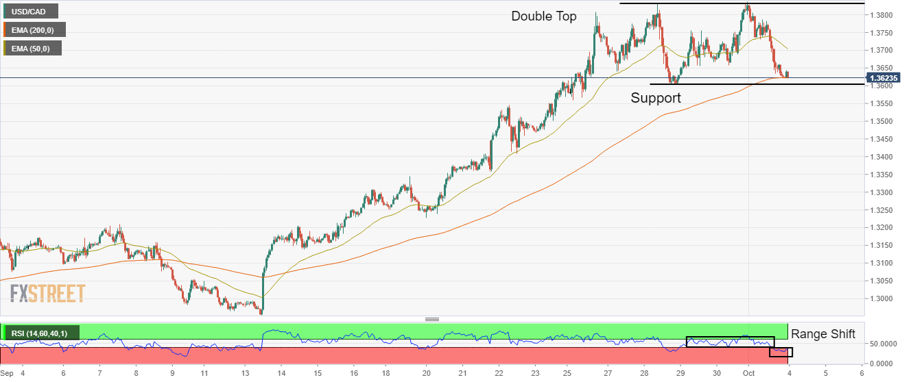 美元/加元价格分析:空头刺破1.3600上方的200指数均线,双顶形态将引发看跌前景