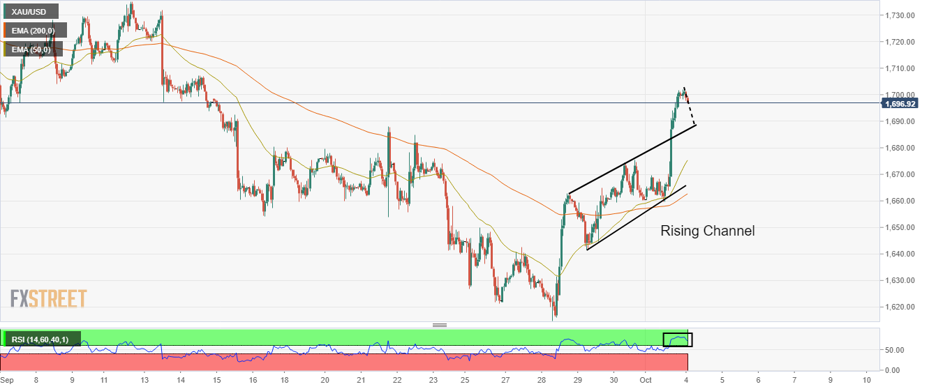 金价价格分析:遇阻1700美元后出现整理,关注美国非农就业人数