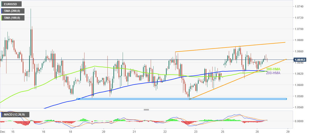 欧元/美元周三在1.0645附近保持守势,在欧洲早盘的低迷行情中描绘出三天的连升势头。 在此过程中,欧元/美元证明了之前从关键的小时移动平均线(HMAs)上反弹,并形成了短期上升楔形看跌形态。 值
