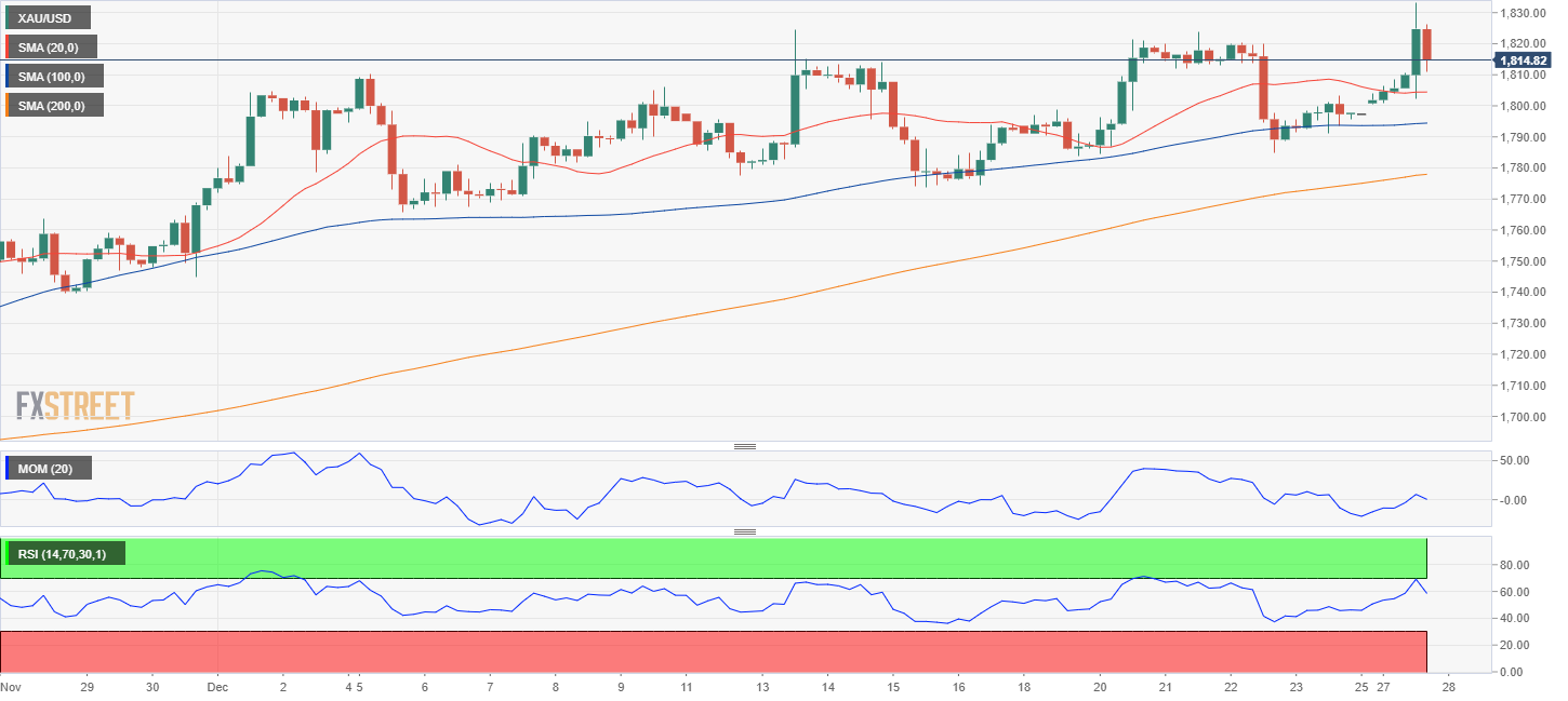 金价价格分析:金价涨势回落,下跌至1,810美元附近