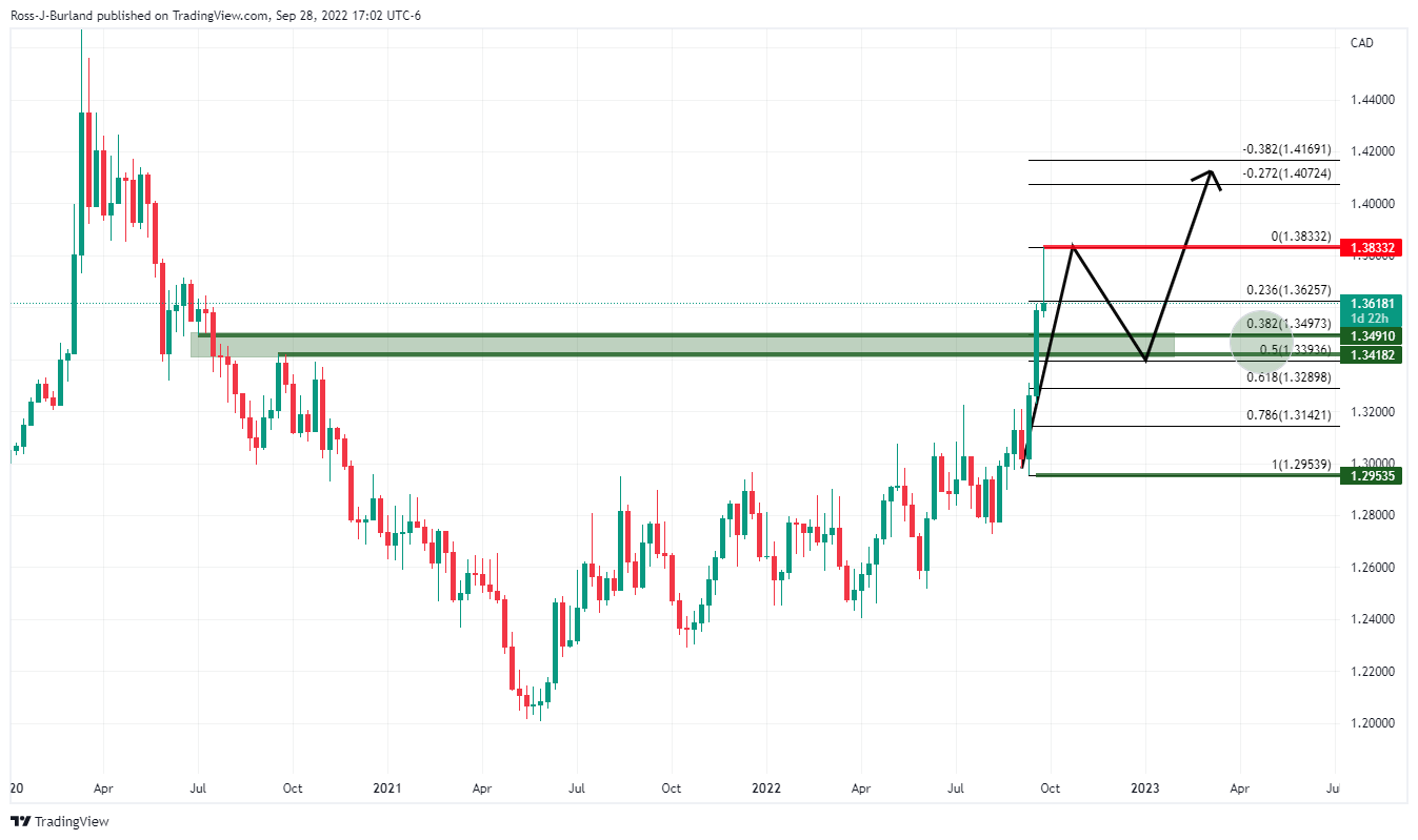 美元/加元价格分析:多头在1.36整数关介入,指向美国时段开盘震荡区间的低水平