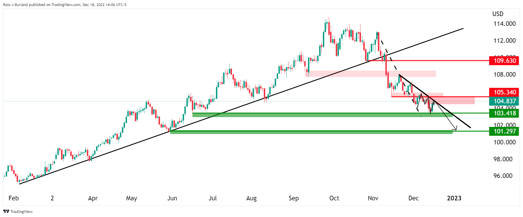 美元/日元价格分析:空头占主导,遇阻趋势阻力