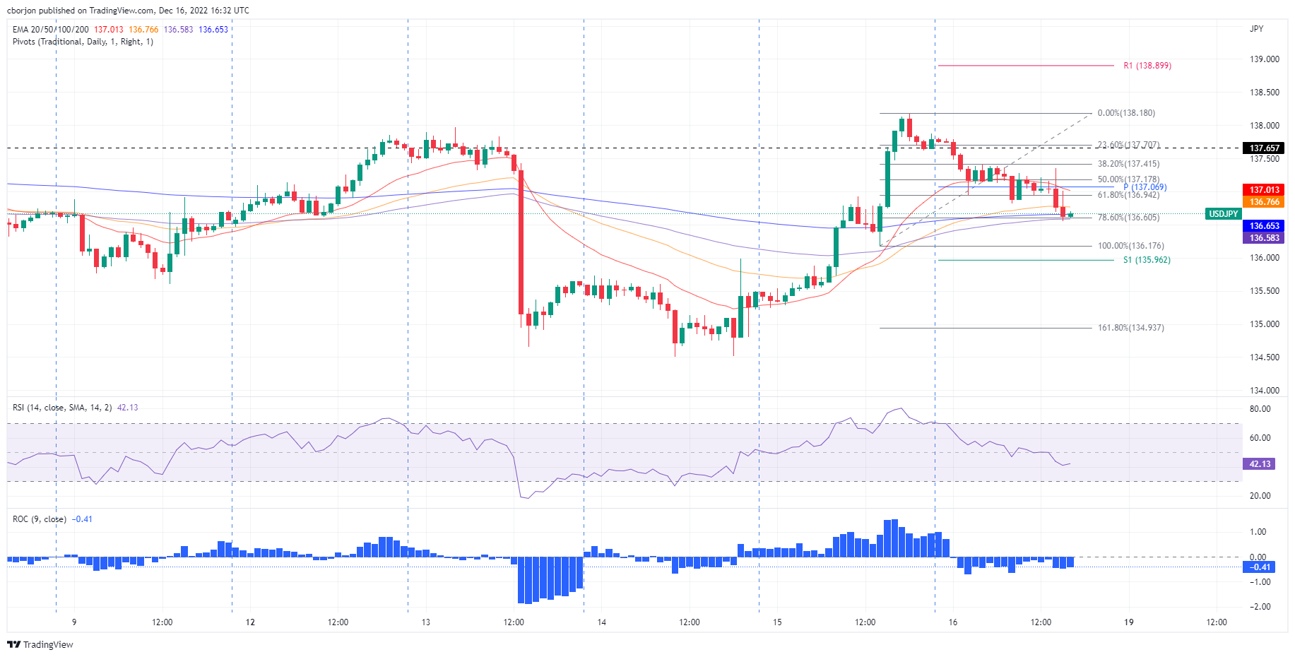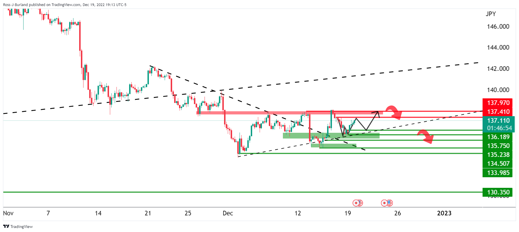 美元/日元价格分析:多头获得喘息,跌至78.6%斐波位136.60附近