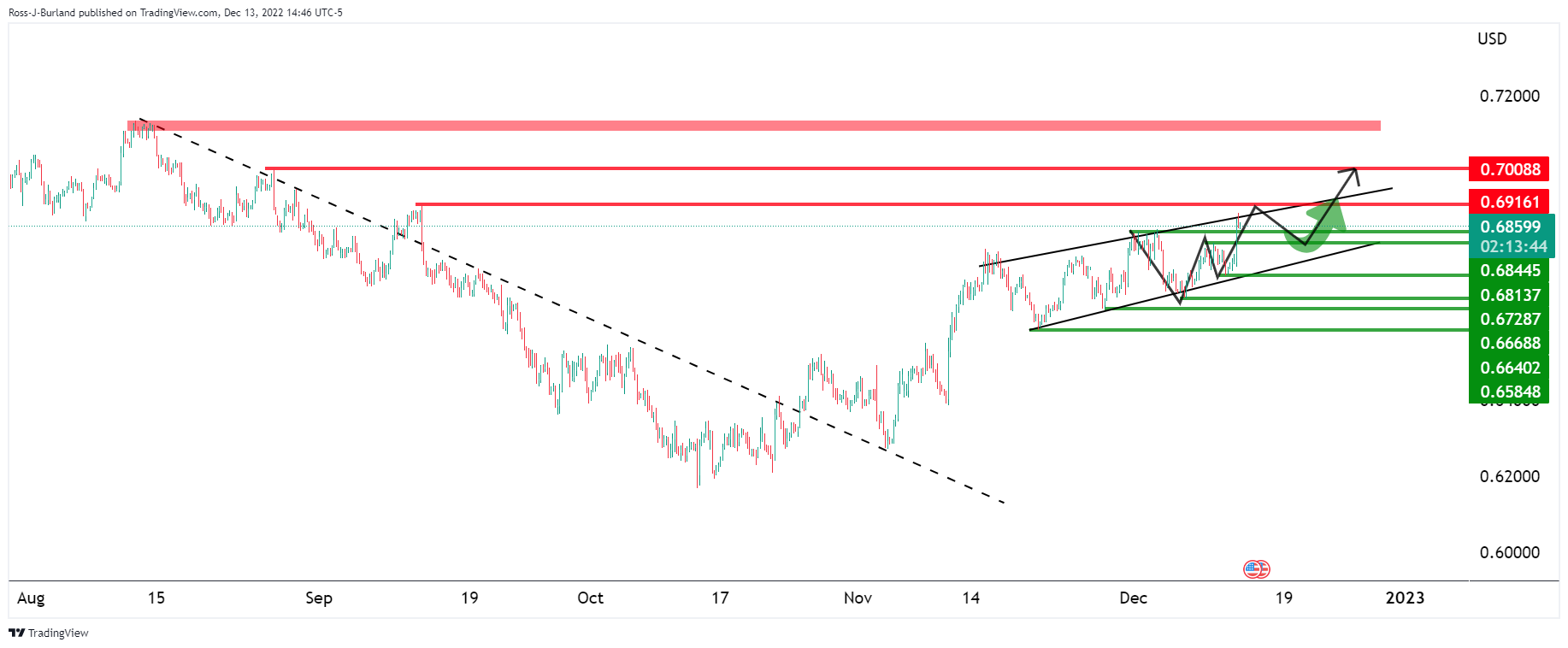 澳元/美元价格分析:多头正测试通道阻力,正遭遇空头