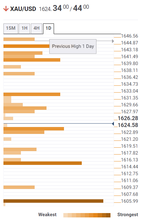 黄金价格预测:黄金/美元下跌关注1615美元和1607美元 - 汇合探测指标