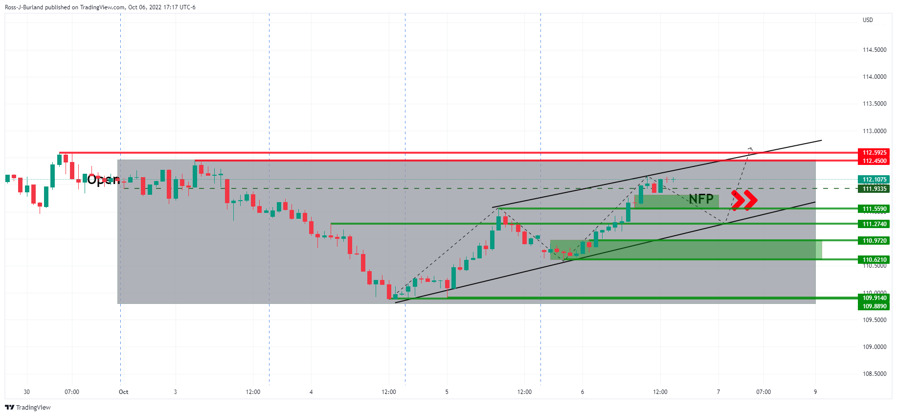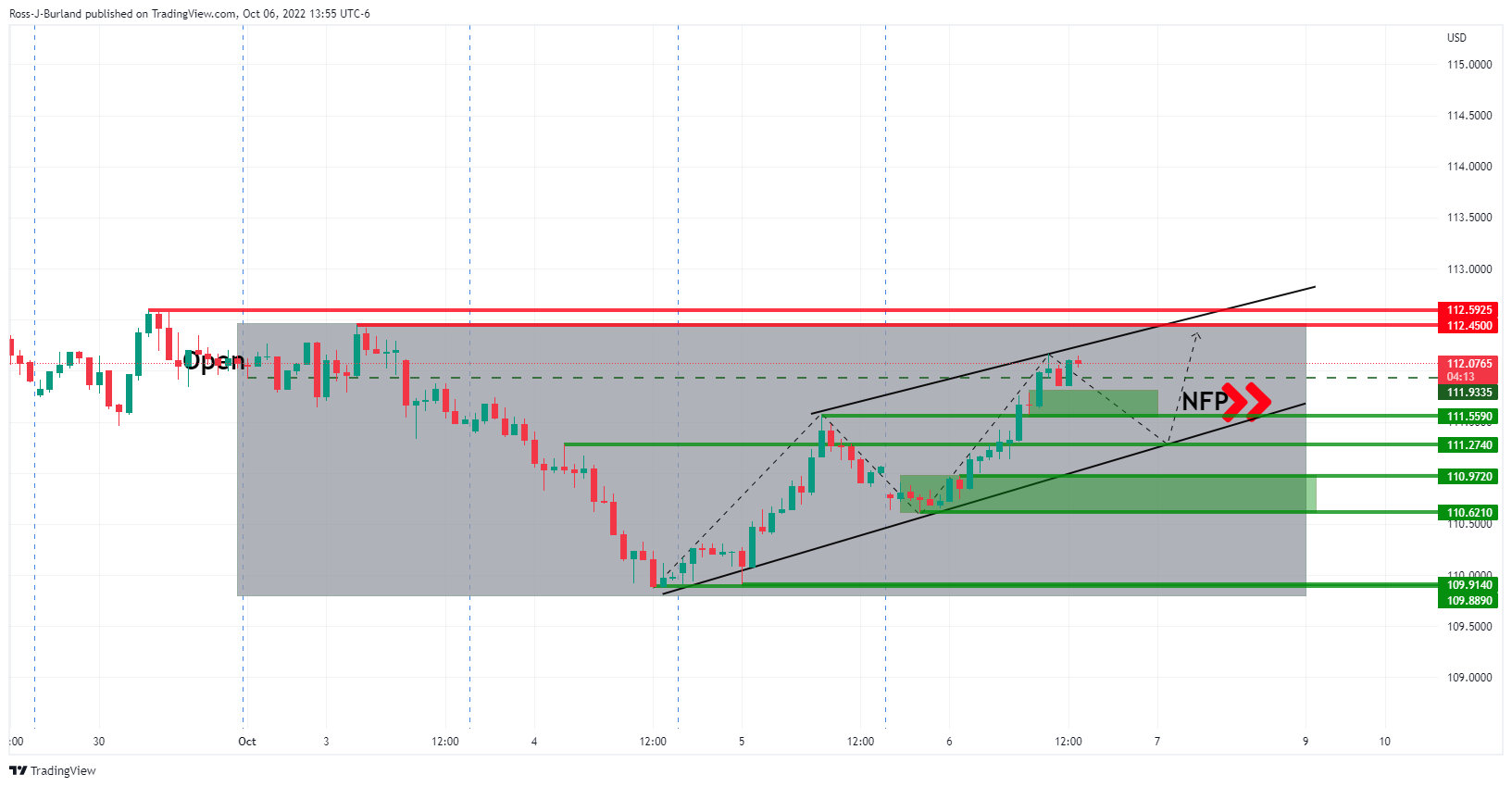 本周剩余还有几个时段,英镑/美元遭到大幅抛售。周四空头处在小时图倒转趋势线下方。 随着伦敦时段结束,英镑/美元进入低位1.1100附近。空头欧市介入,美国时段终结,日内将公布美国非农就业数据,空头可