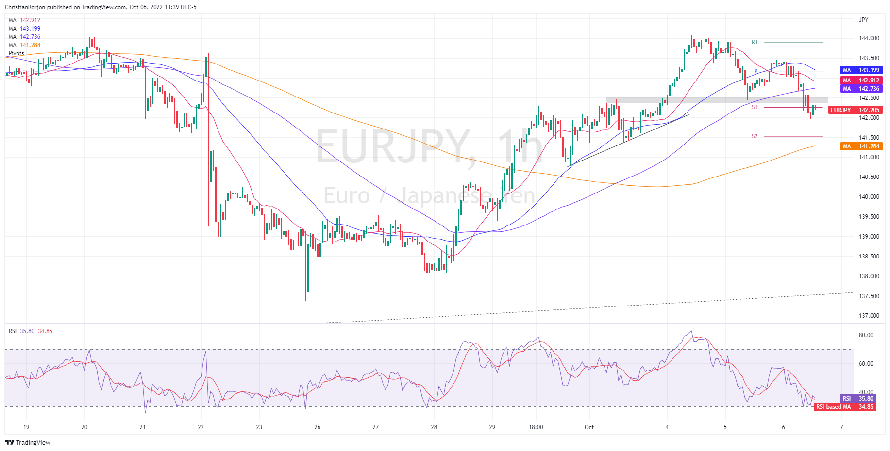 欧元/日元价格分析:延续下跌,下跌接近142.20水平