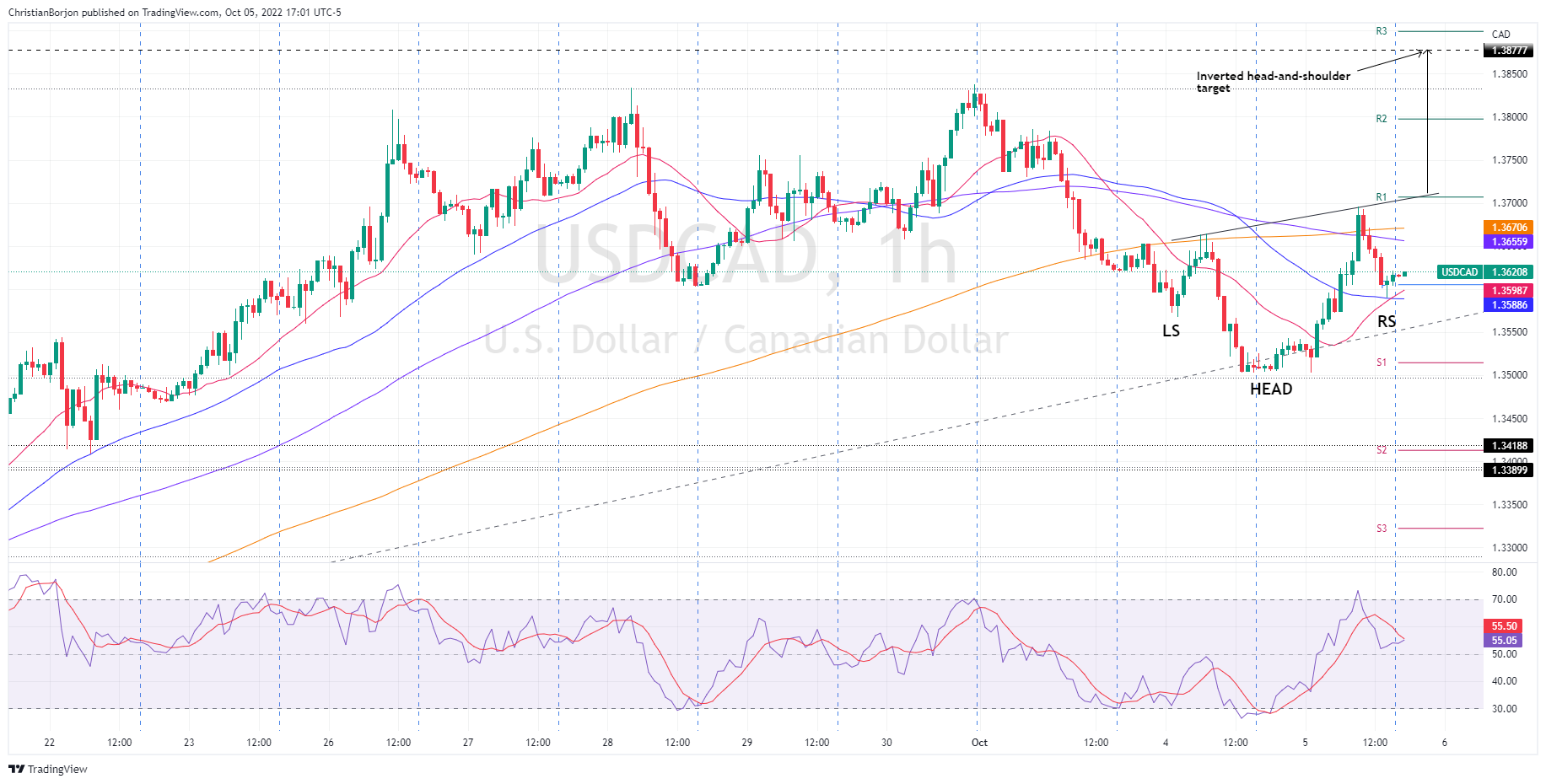 美元/加元价格分析:小时图构筑头肩倒转形态指向1.3877水平