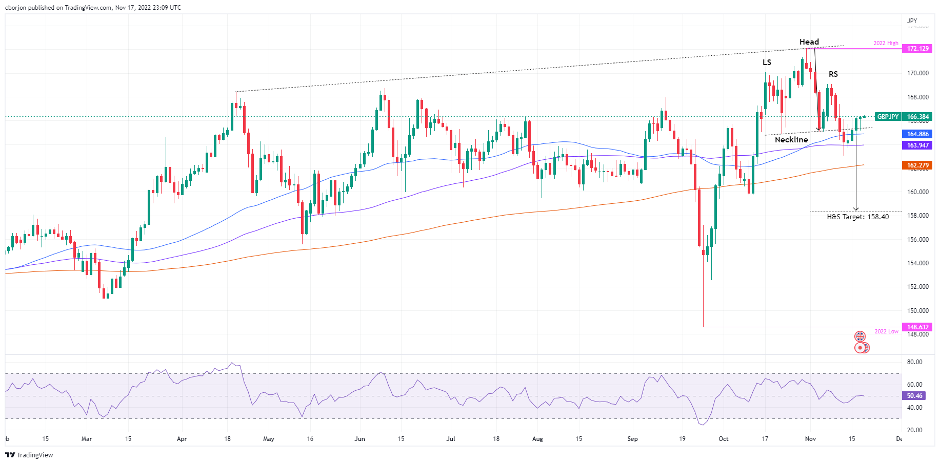 英镑兑日元价格分析:攀升至头肩形态颈线上方后,徘徊于166.00附近
