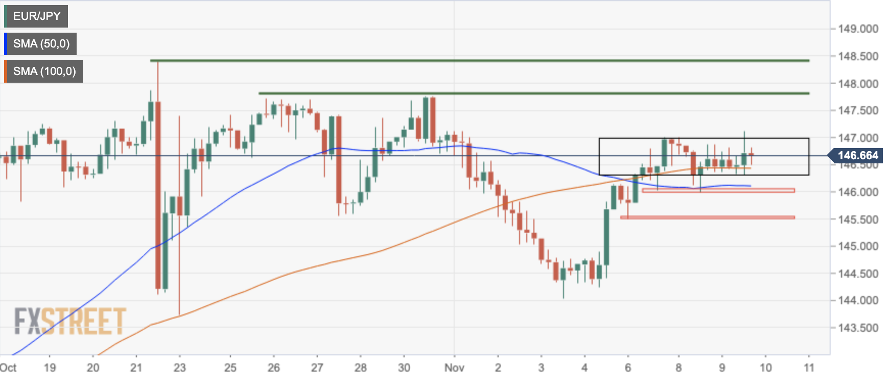 欧元兑日元价格分析:受困于窄幅区间,遇阻147.00水平