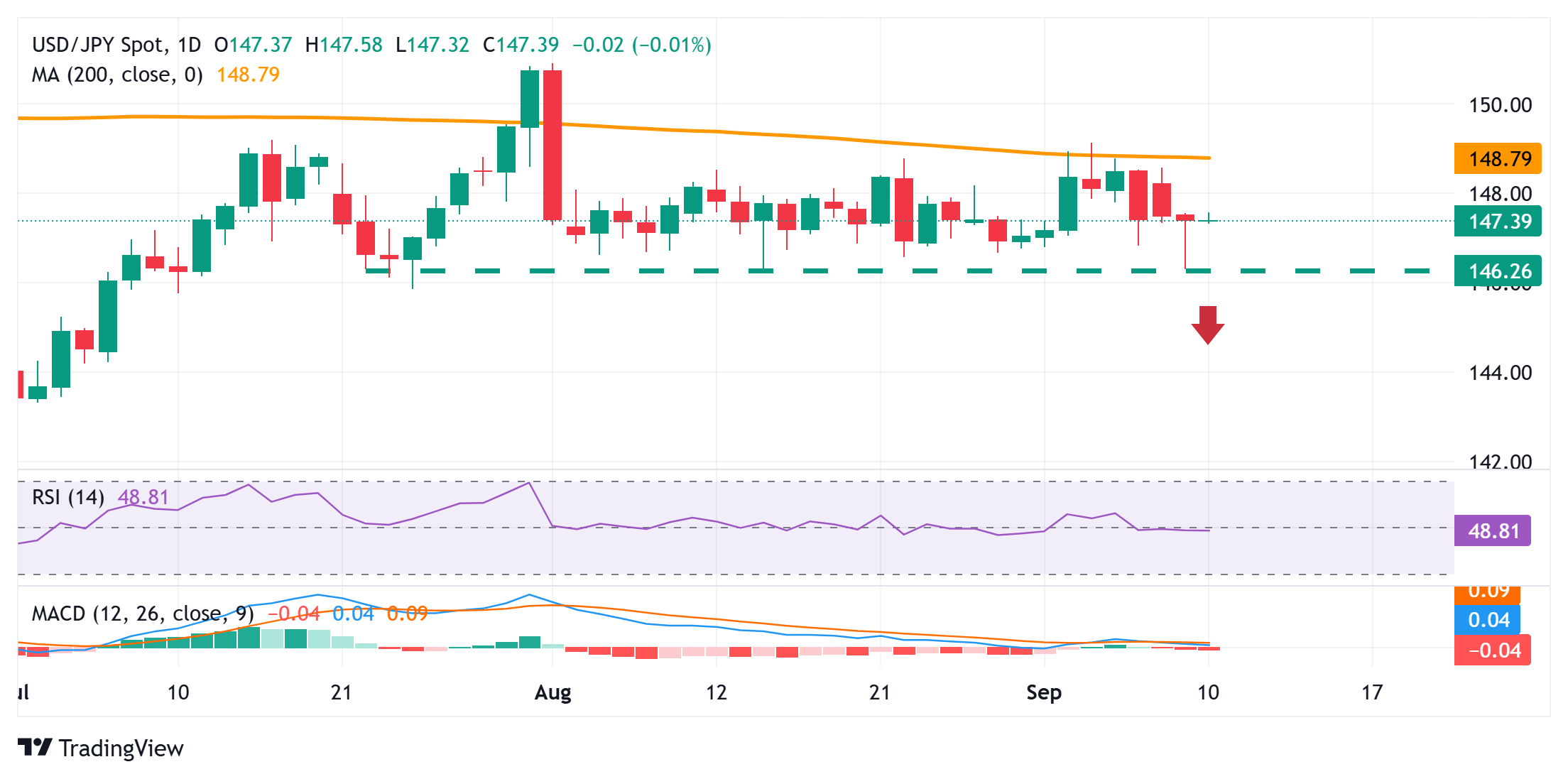 周三亚市早盘,美元/日元失去动能,跌至约147.35。由于市场对美联储(Fed)下周可能大幅降息的猜测,美元(USD)兑日元(JPY)走弱。