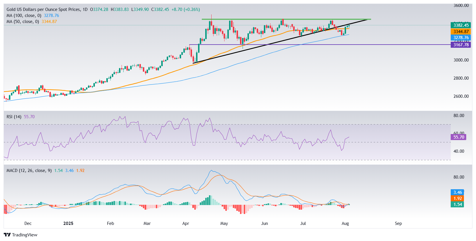黄金(黄金/美元)在周二延续涨势,连续第四天上涨,在3350美元附近找到强劲支撑,扭转了之前的回调。