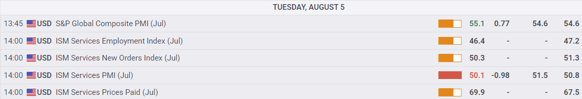 美國 七月 ISM Services PMI低于预期51.5:实际值(50.1)