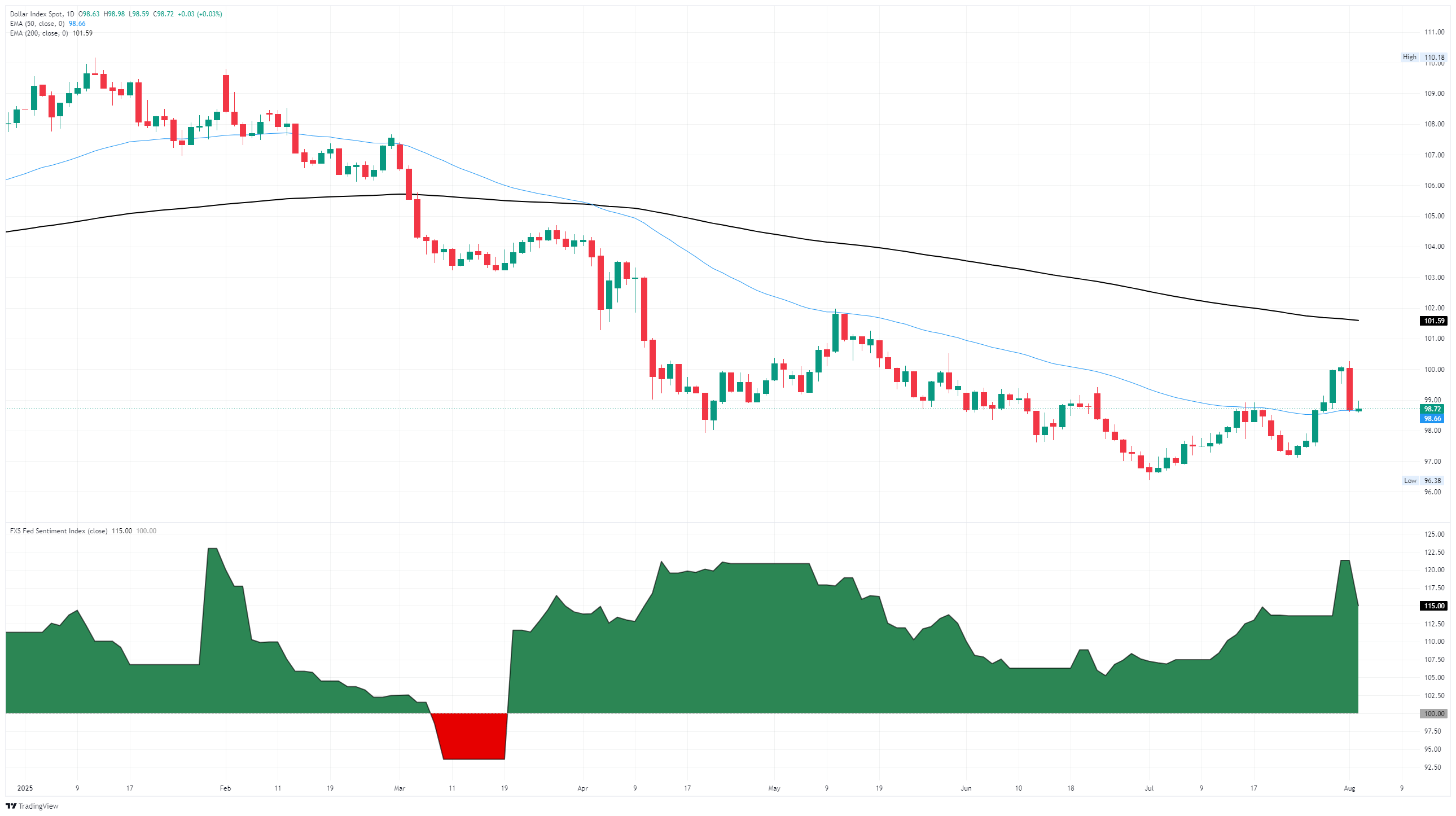 美元指数回落至99.00以下,美国供应管理协会(ISM)服务业采购经理人指数(PMI)数据备受关注