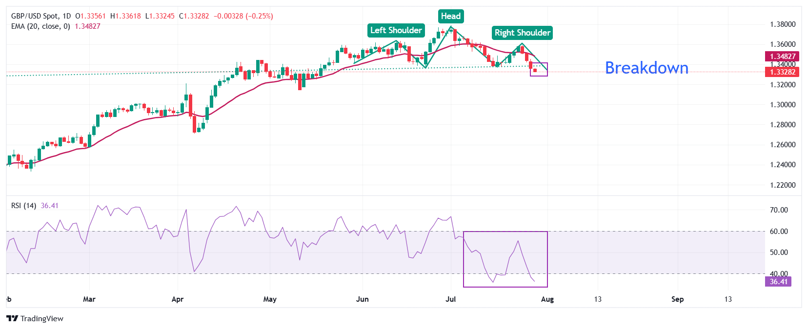根据职位空缺和劳动力流动调查(JOLTS),英镑/美元在周二录得超过0.10%的温和跌幅,此前美国(US)就业数据显现降温迹象。美联储(Fed)已开始为期两天的货币政策会议,会议将于7月30日结束。该