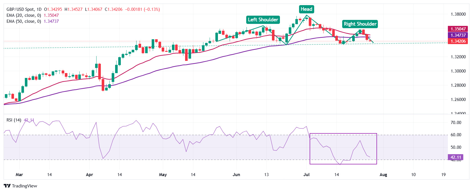 英镑(GBP)在周一欧洲交易时段兑美元(USD)跌至接近1.3400。由于美国与欧盟(EU)之间贸易框架的宣布,英镑/美元下跌,美元吸引了买盘。