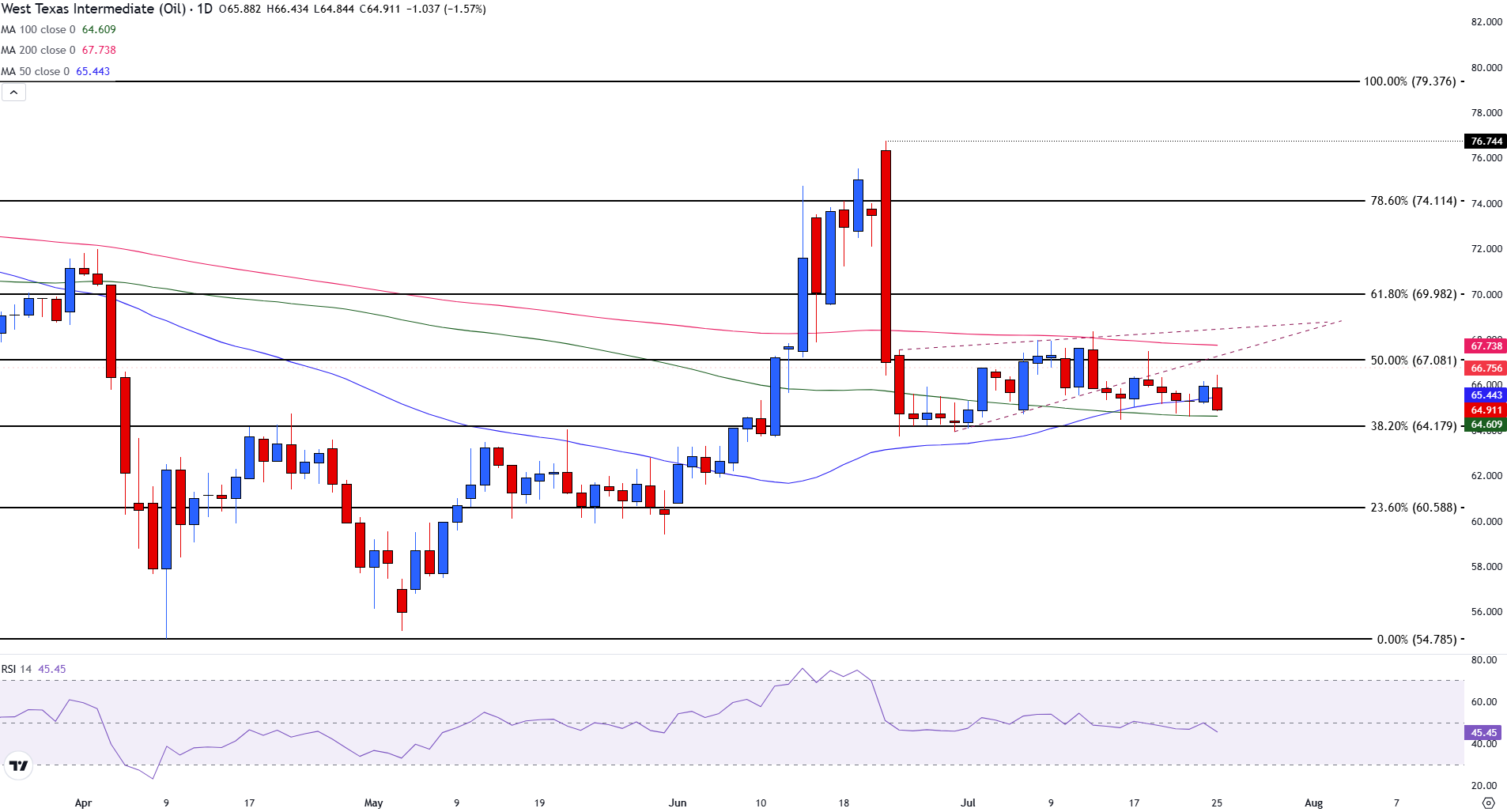 WTI 原油跌破65美元,因产量上升和需求信号不明