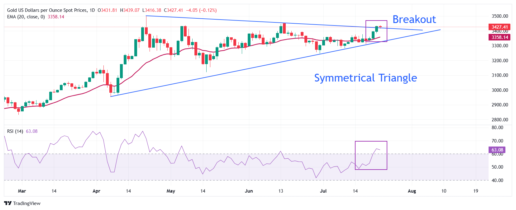 金价预测:黄金/美元关注三角形突破,目标重返约 3,500 美元的历史高点