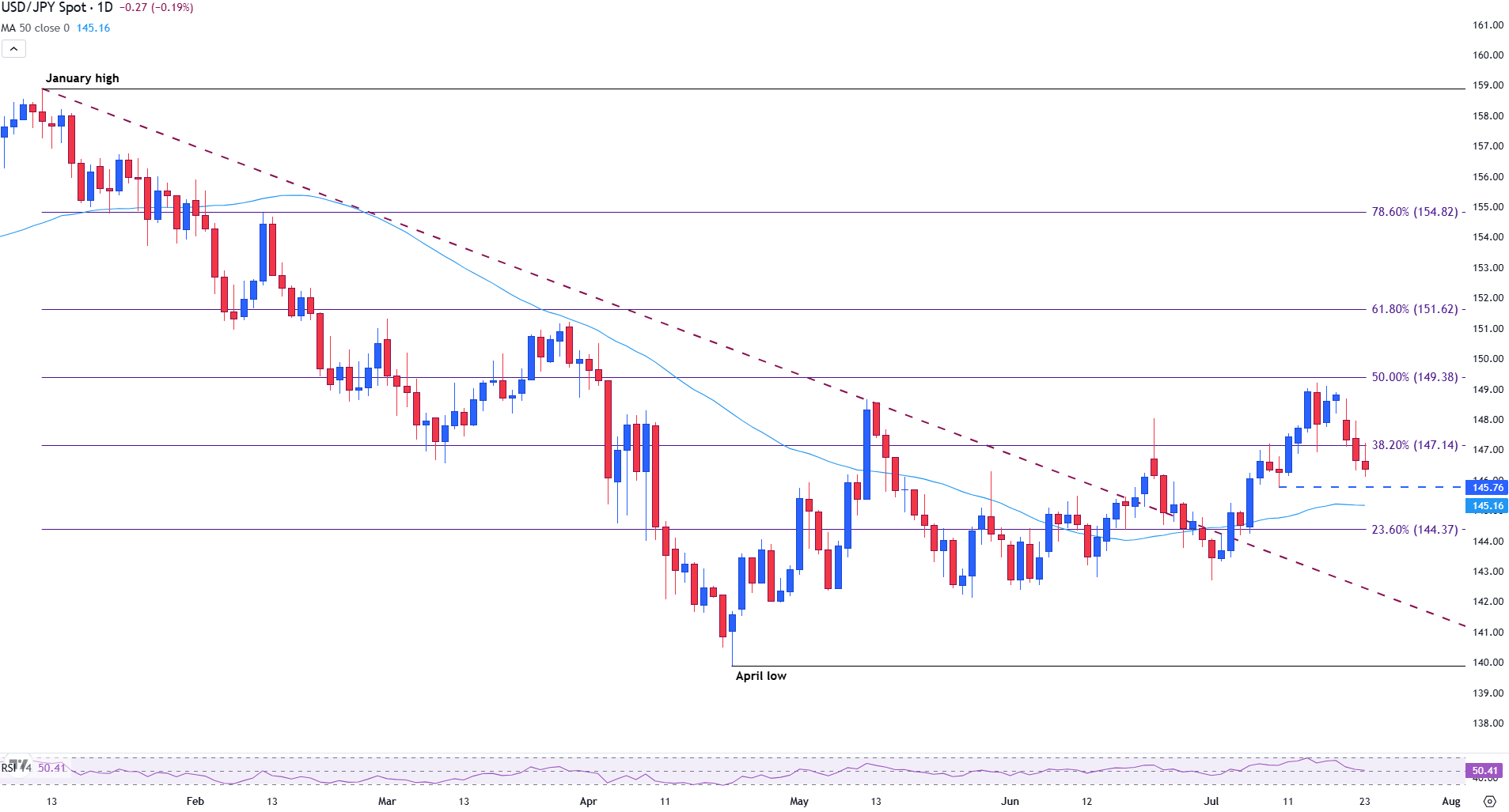 特朗普总统宣布美国与日本之间达成贸易协议,以及潜在的美欧协议前景,对美元(USD)造成压力,进一步加剧了持续的疲软。