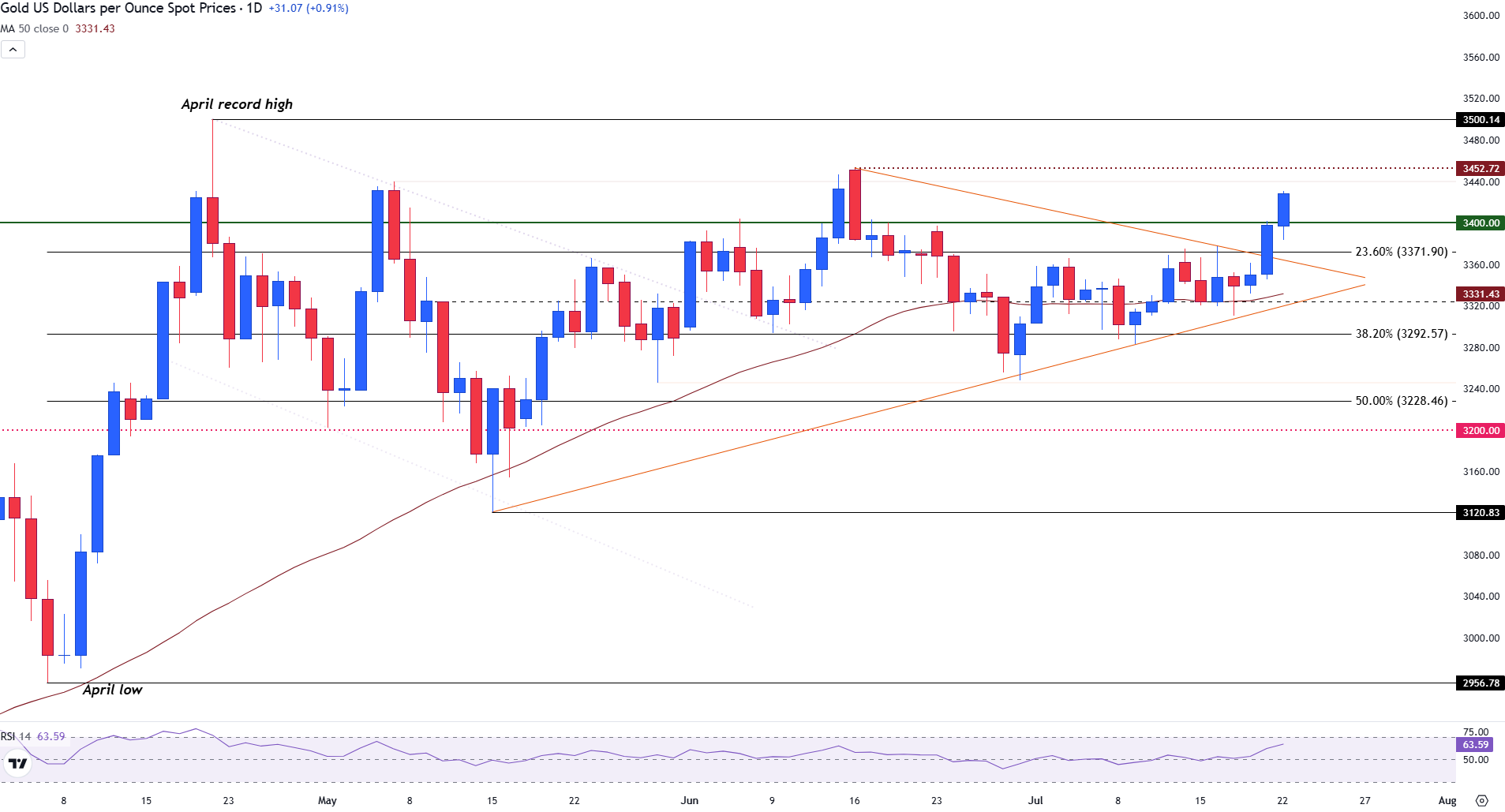金价预测:黄金/美元努力突破3400美元,因美欧贸易紧张局势