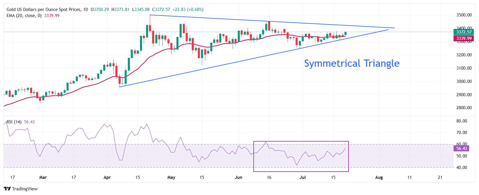 金价预测:黄金/美元跳涨至接近 3,370 美元,基于 20 日指数移动平均线附近的筑底走势