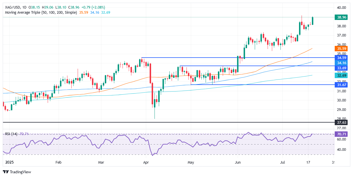 白银价格预测:白银/美元因美元走弱而飙升2%,逼近39美元