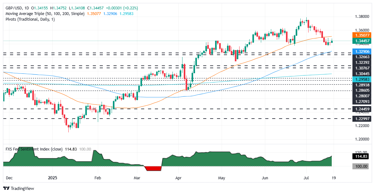 英镑/美元在周五北美时段上涨0.21%,因大西洋两岸经济数据匮乏。美国公布的疲软数据略微提振了美元,尽管该汇价在触及日内低点1.3406后,现交投于1.3442。
