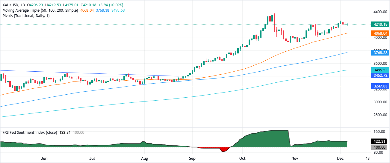 黄金价格维持在4110美元附近,市场静候美国拨款法案的众议院投票