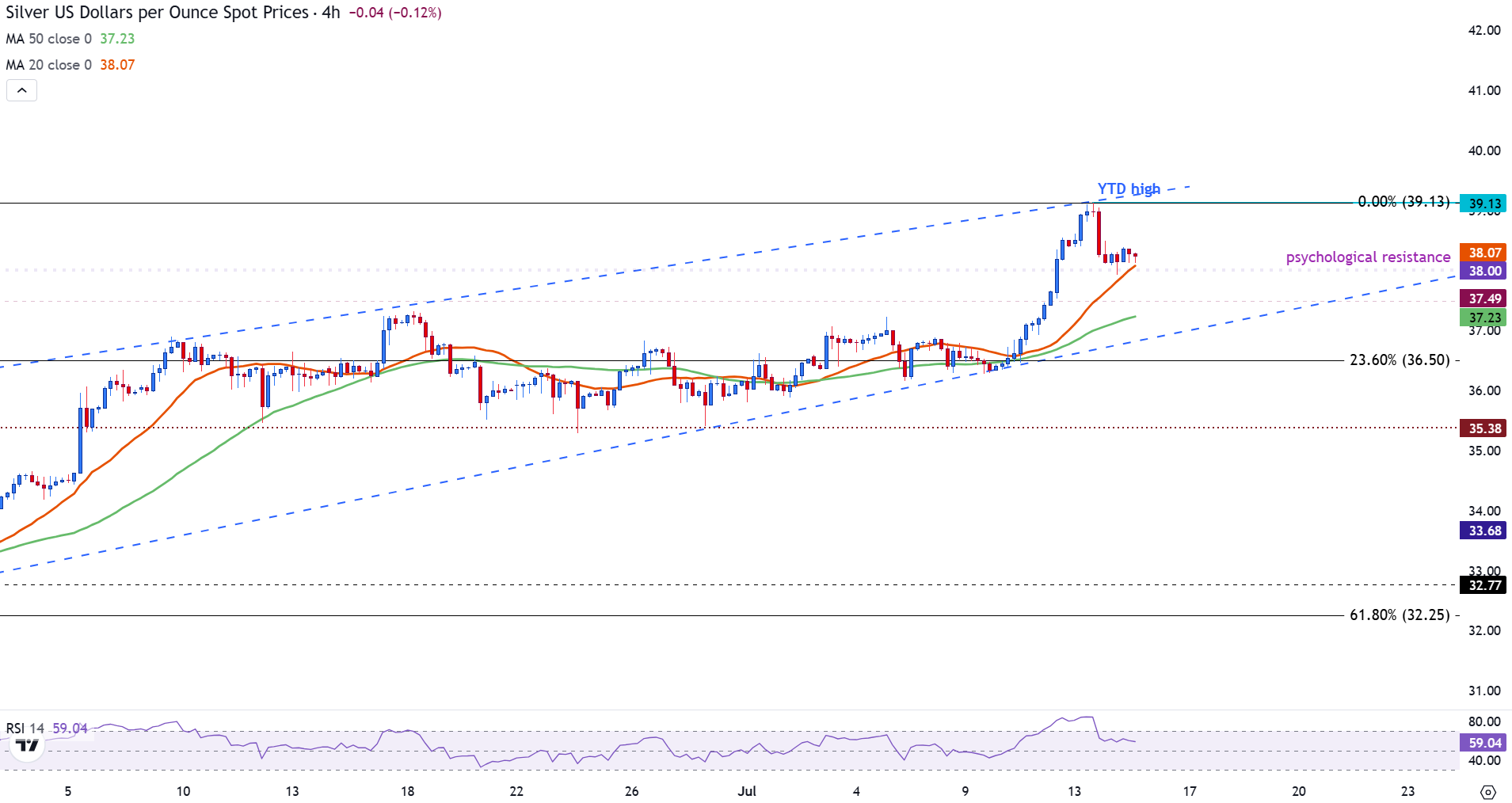 白银价格回落至38.50美元以下,因强势美元和CPI数据导致看涨动能减弱