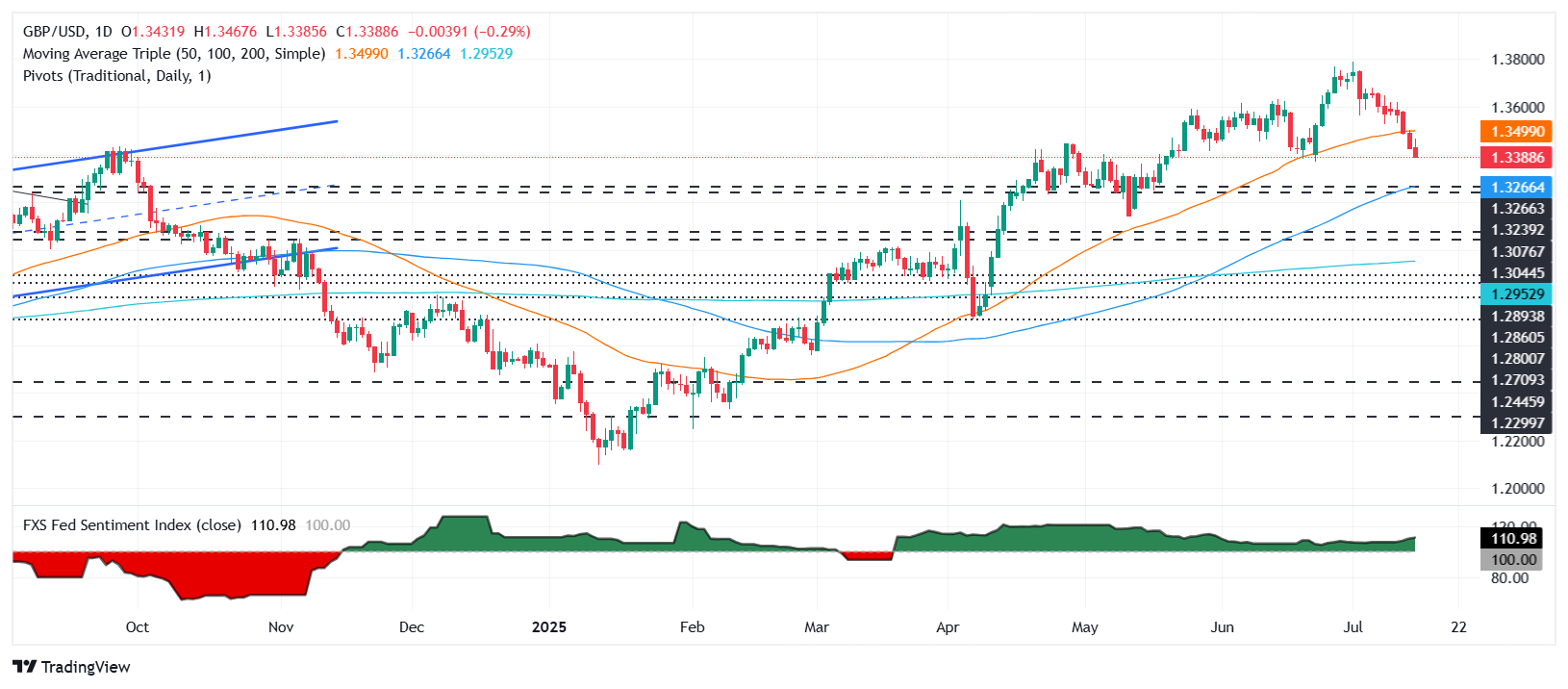 英镑/美元在最新的美国通胀报告显示上涨迹象后,连续第四天扩大跌幅,这是关税引发价格飙升的首个迹象。截至发稿时,该货币对交易于1.3400下方,跌幅为0.23%