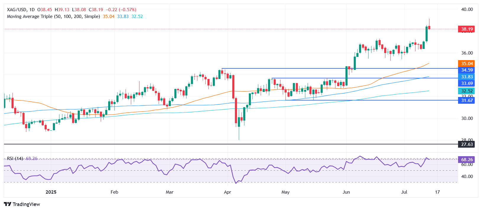 白银价格预测:白银/美元从39.00美元以上的多年高点回落