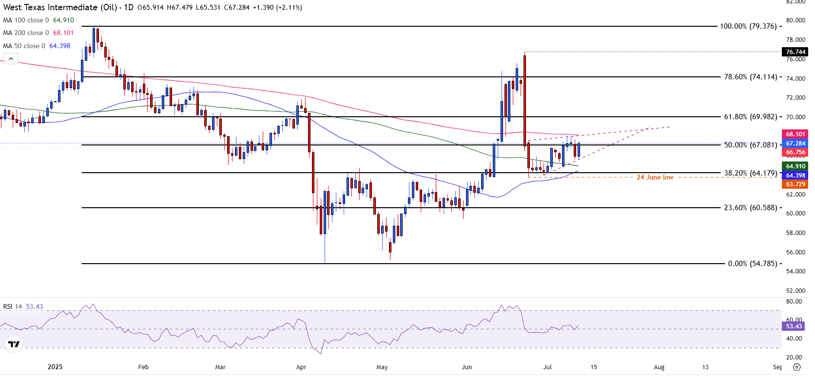 周五,西德克萨斯中质原油(WTI)价格稳稳保持在 67.00 美元以上,交易者正在消化基本面环境的变化。