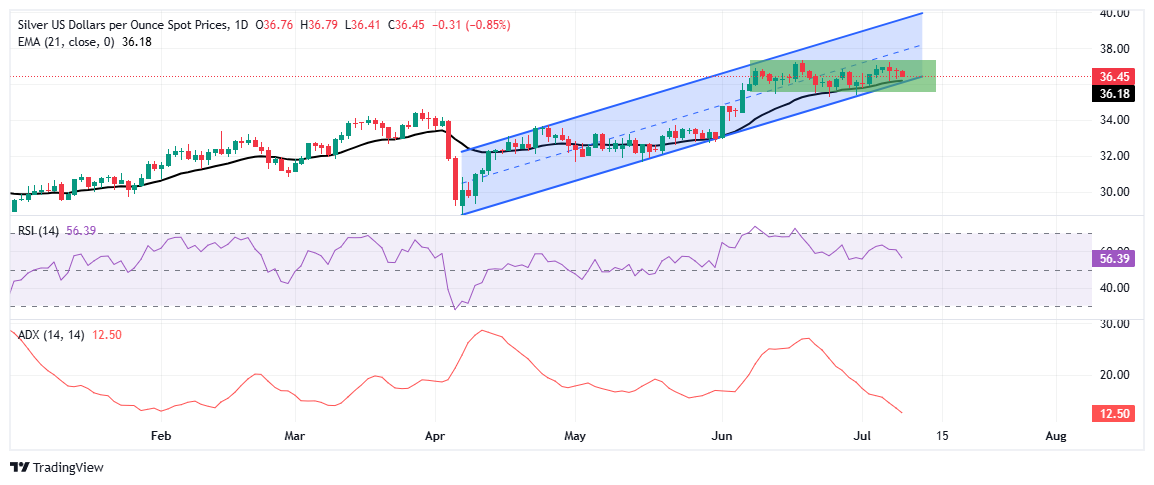 周三,白银(XAG/USD)交投于36.40美元附近,标志着其连续第三日下跌,因美元走强和美国国债收益率上升继续对贵金属施加压力