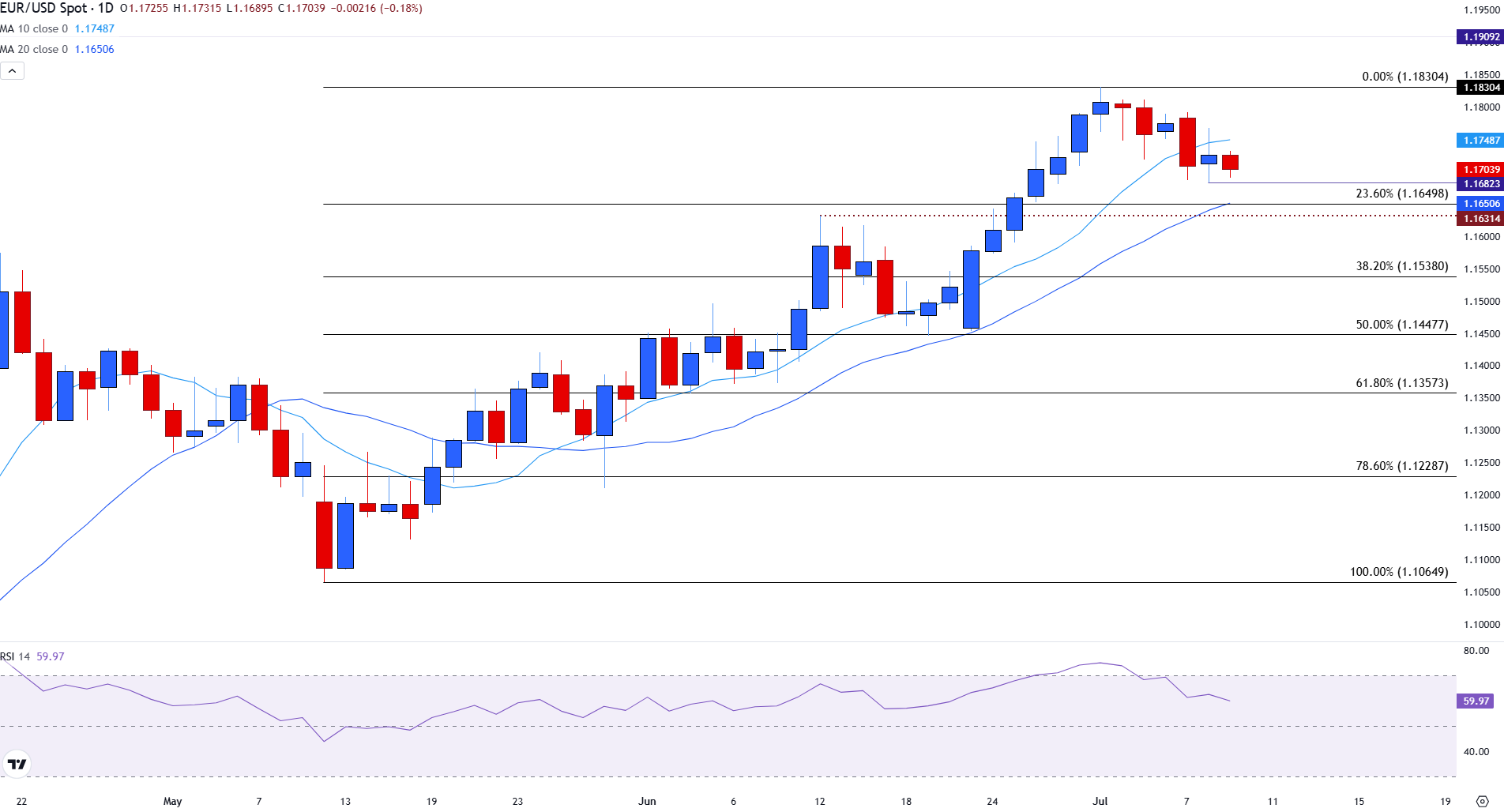欧元(EUR)对日本日元(JPY)正在下滑,脱离周三达到的年初至今高点172.28,因对美国可能针对日本的关税的新担忧而有所缓解