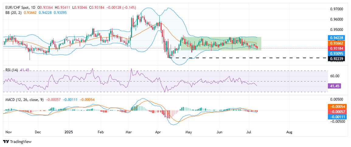 欧元(EUR)在周三对瑞士法郎(CHF)走弱,欧元/瑞士法郎交易接近其多周区间的下边界,约为 0.9318。由于欧洲央行(ECB)官员的最新评论增加了市场对欧元的谨慎情绪,该交叉汇率仍然承压。