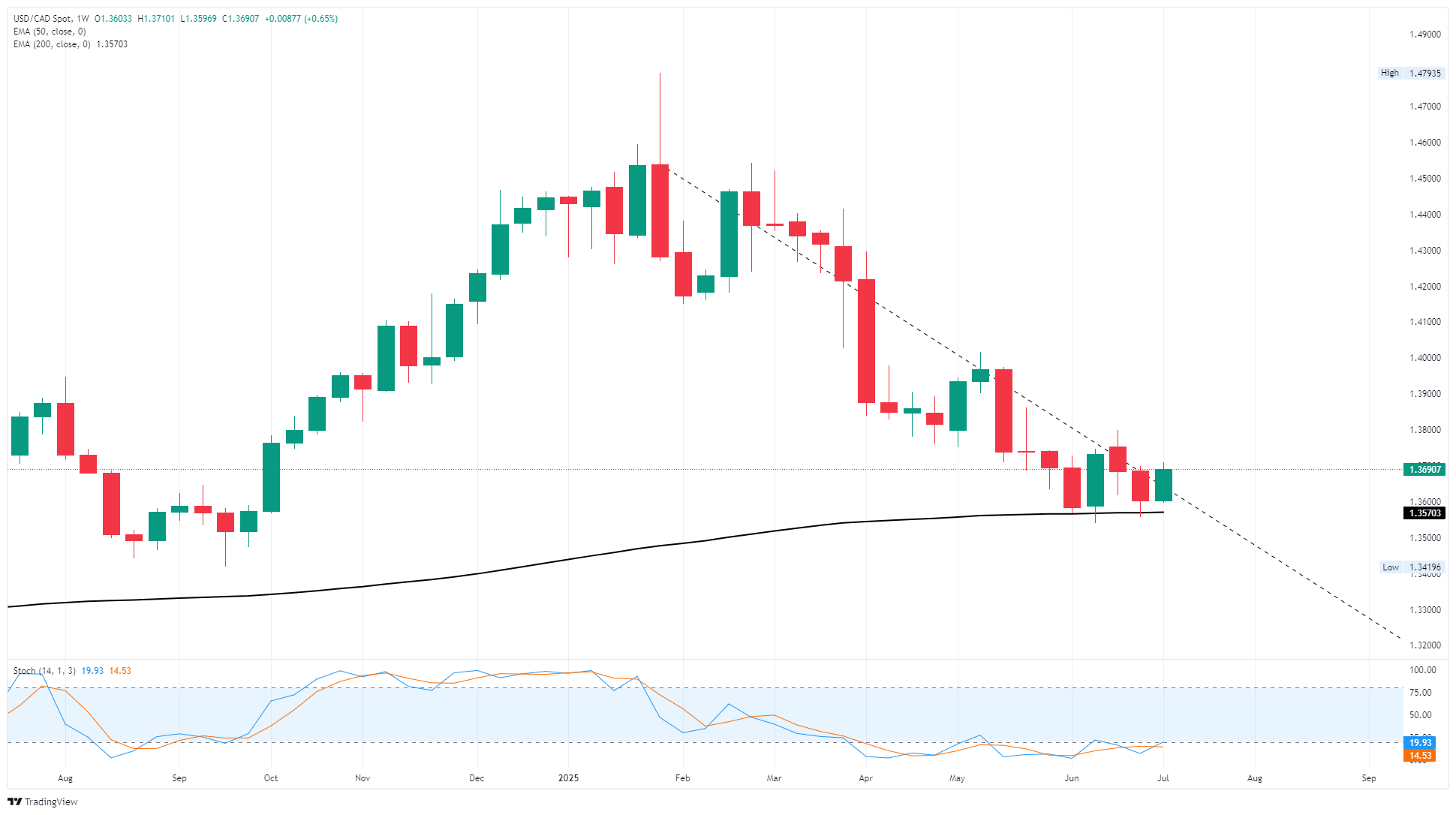 加拿大元(CAD)在周三进一步贬值,跌至约两周以来对美元(USD)的最低买盘,推动美元/加元(USD/CAD)再次回升至1.3700区域