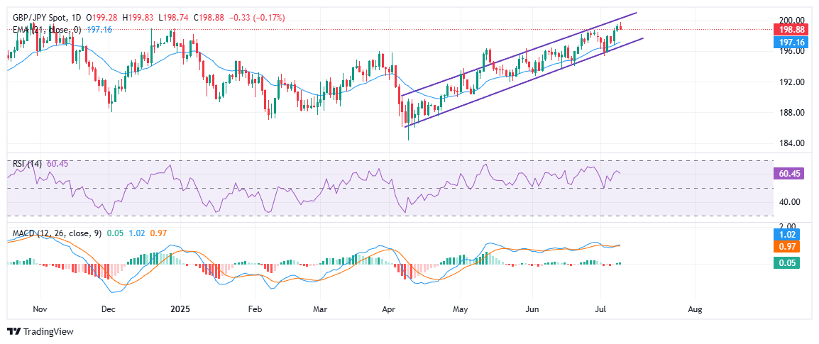 周三,英镑(GBP)对日元(JPY)小幅回落,在升至199.83后回撤,这是自2024年7月底以来的最高水平。