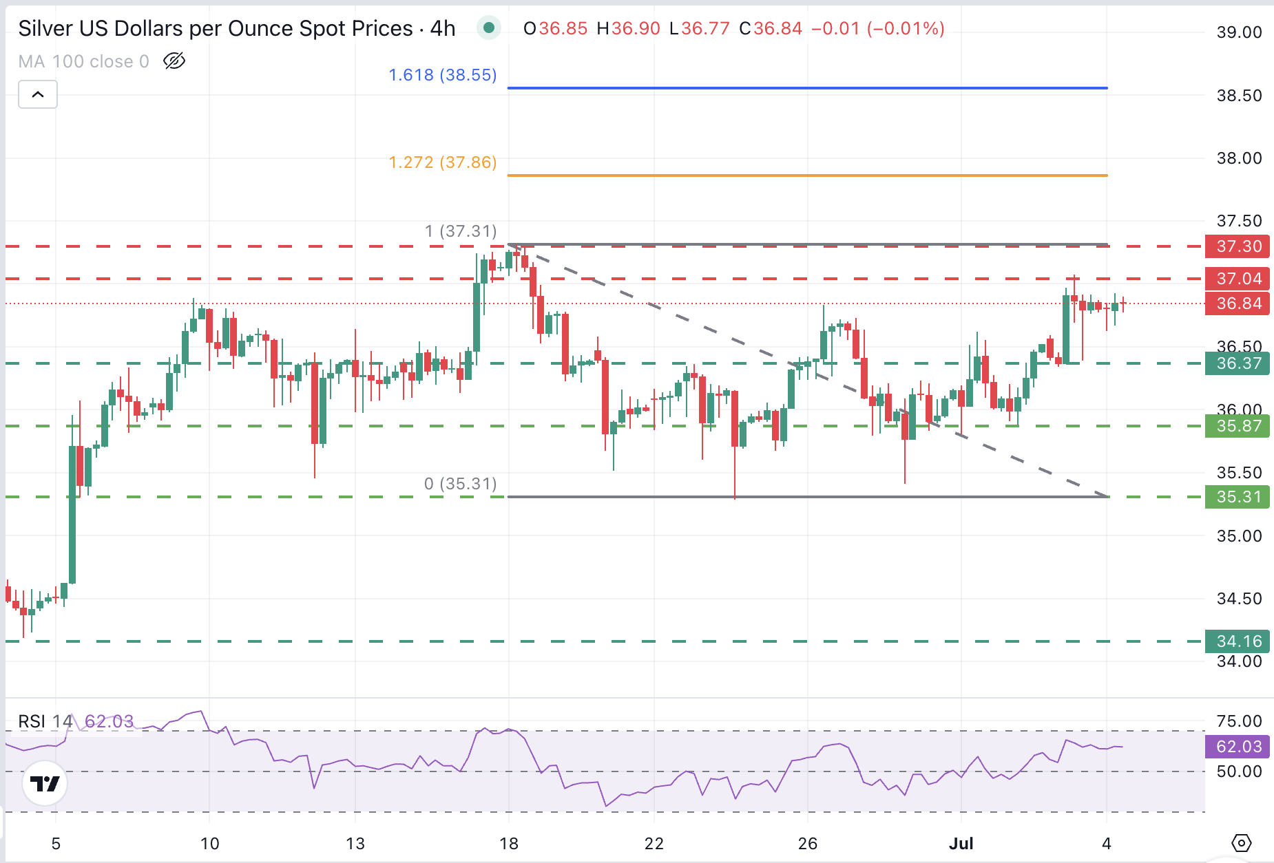 白银价格预测:在避险市场中,白银/美元在37.00美元下方盘整