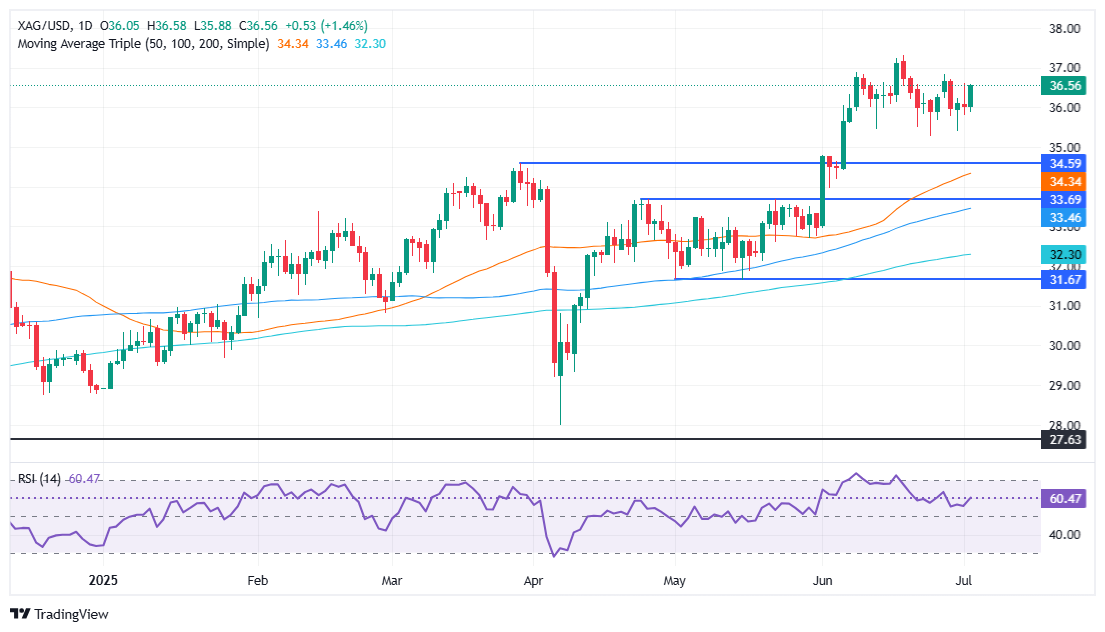 白银价格预测:白银/美元攀升至36.00美元以上,涨幅超过1%