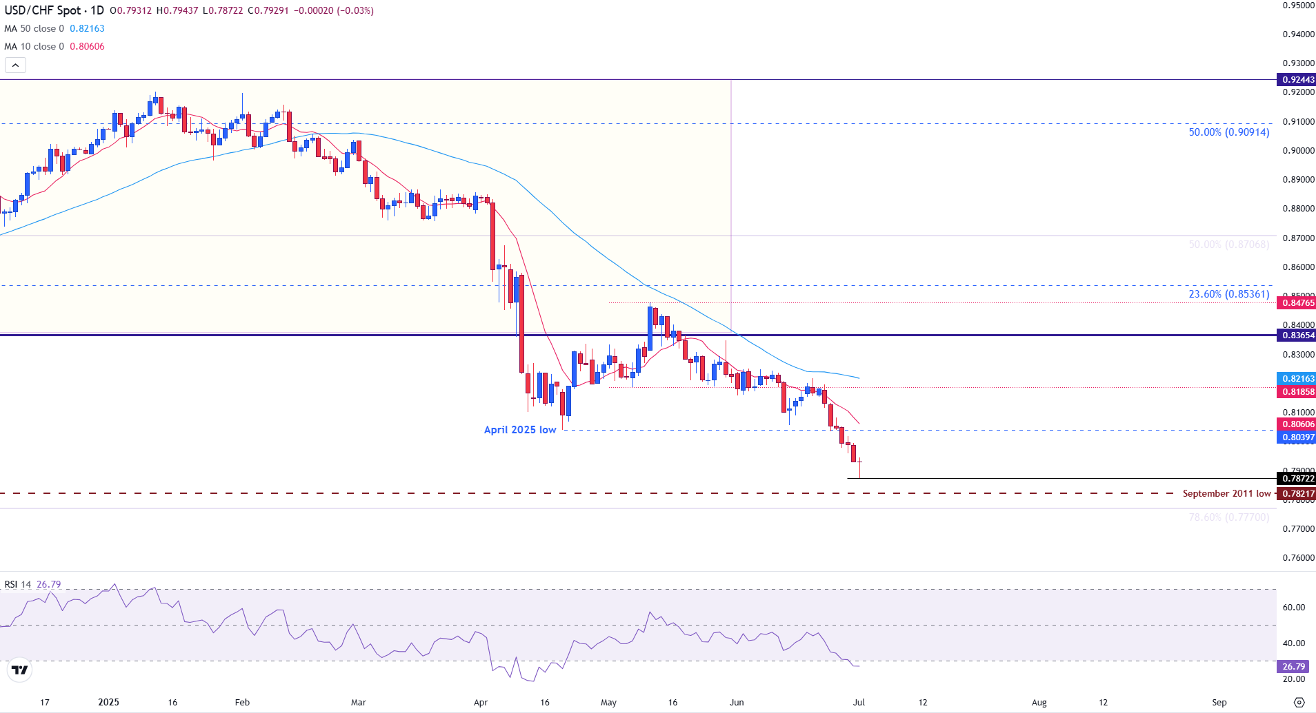 美元/瑞郎持稳,特朗普的税收法案通过参议院,而锤子线信号可能的反转