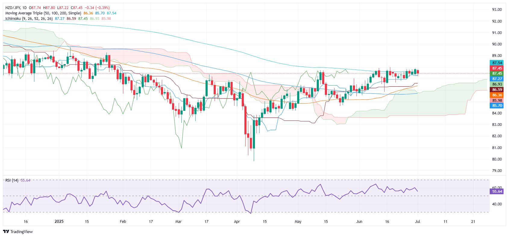 纽元/日元价格预测:在风险规避情绪下保持在87.35以上,保持看涨