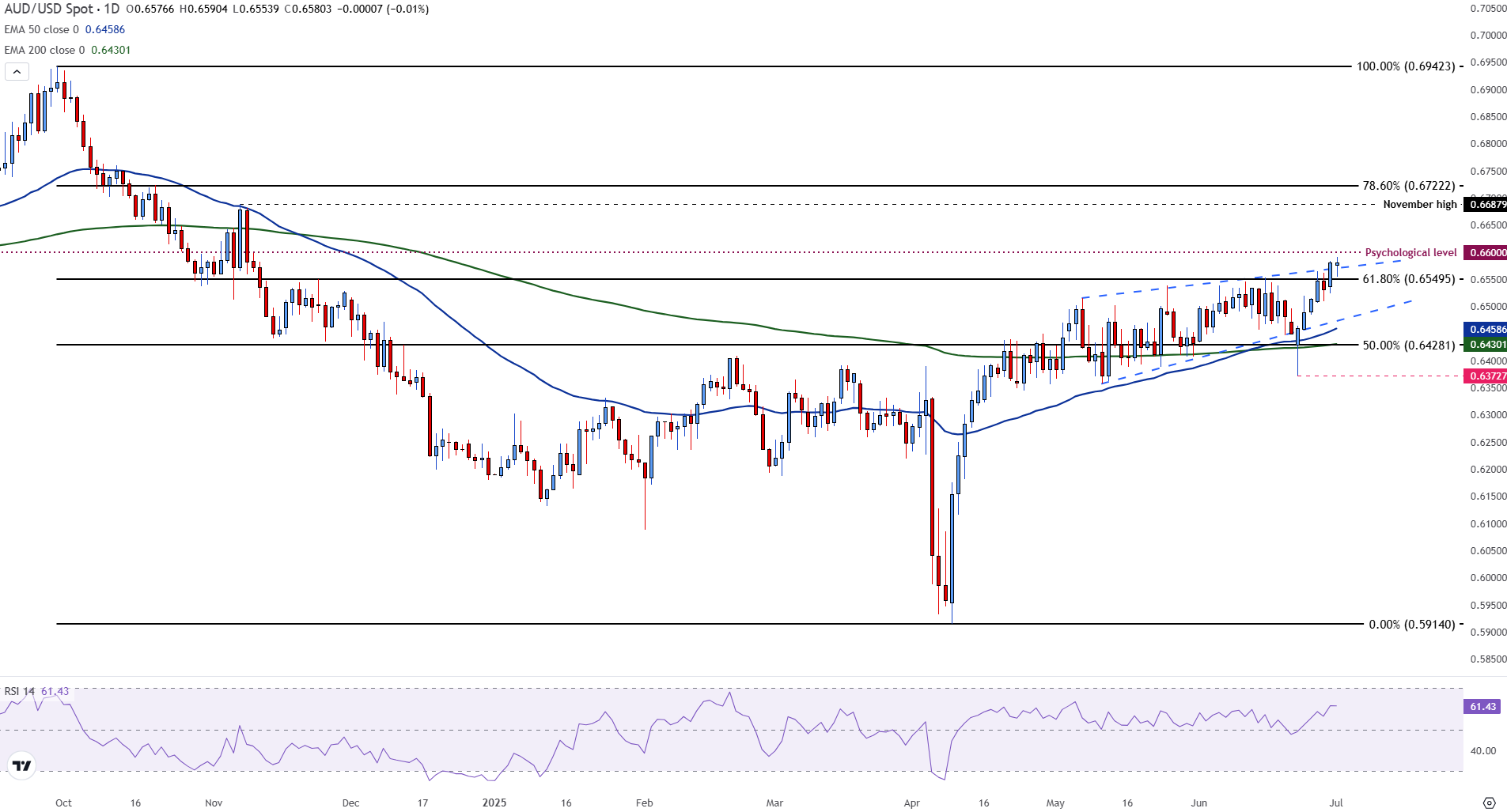 澳大利亚元(AUD)在周二对美元(USD)保持稳定,澳元/美元多头关注可能突破0.6600。
