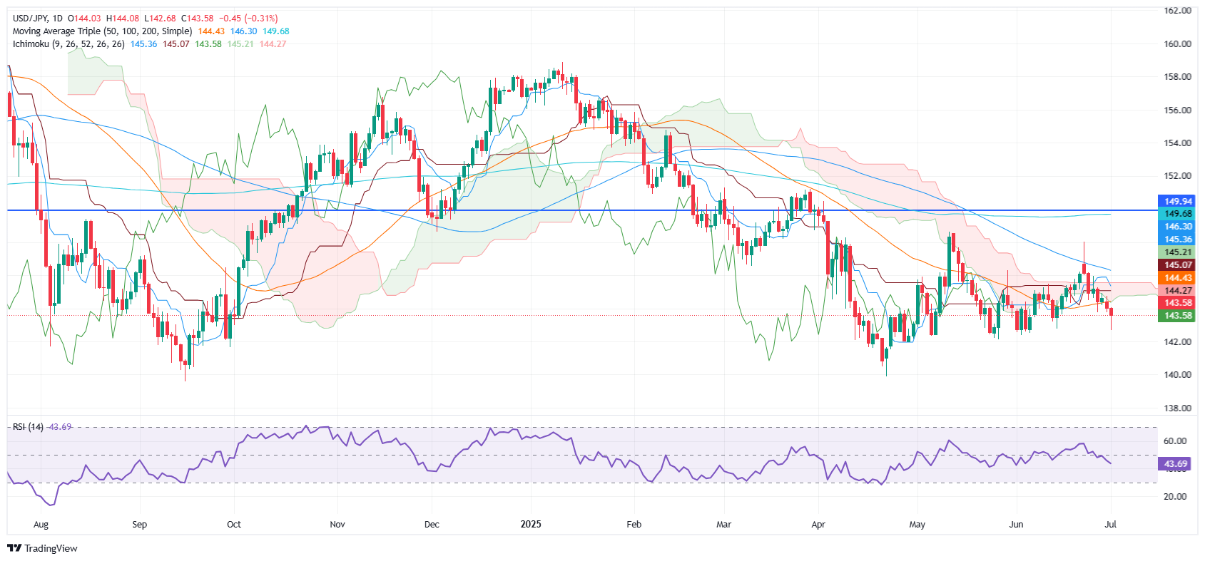 美元/日元在触及142.68的新四周低点后小幅下跌0.17%,受到日本经济数据向好的推动。