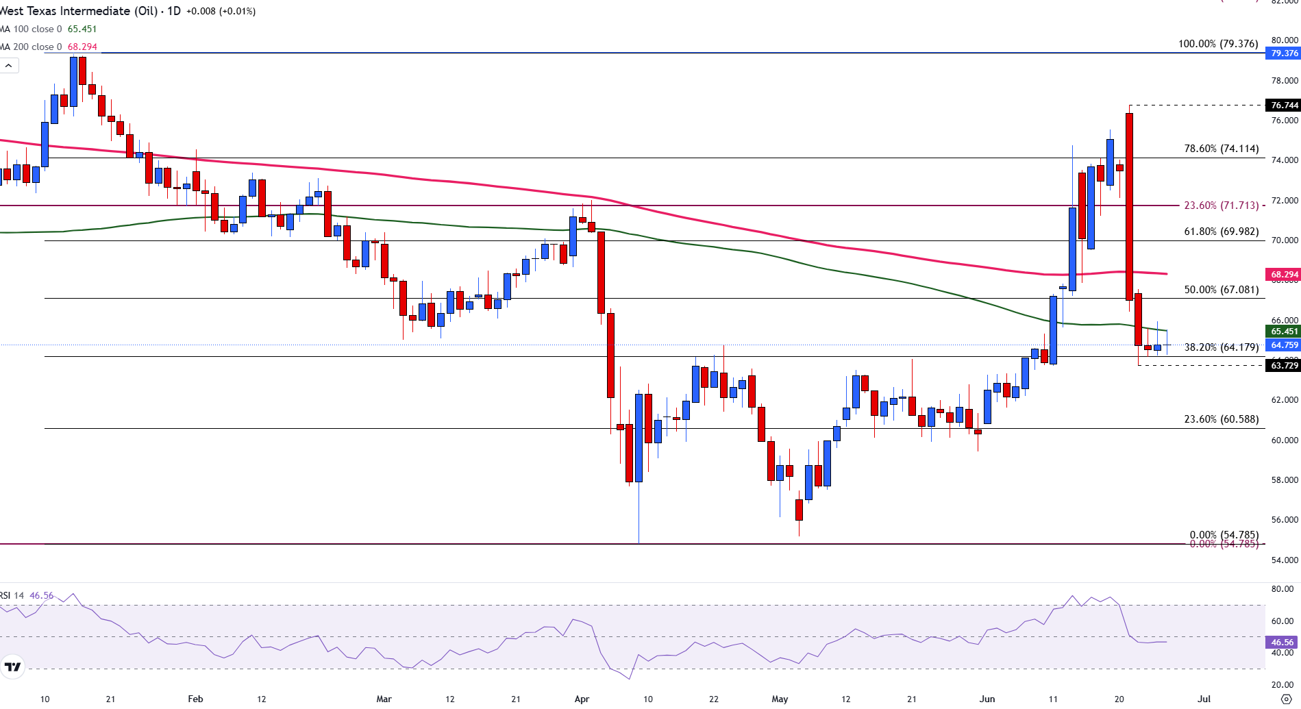 西德克萨斯中质原油(WTI)自周一达到76.44美元的高点以来大幅下跌,本周价格每桶下降超过10.00美元