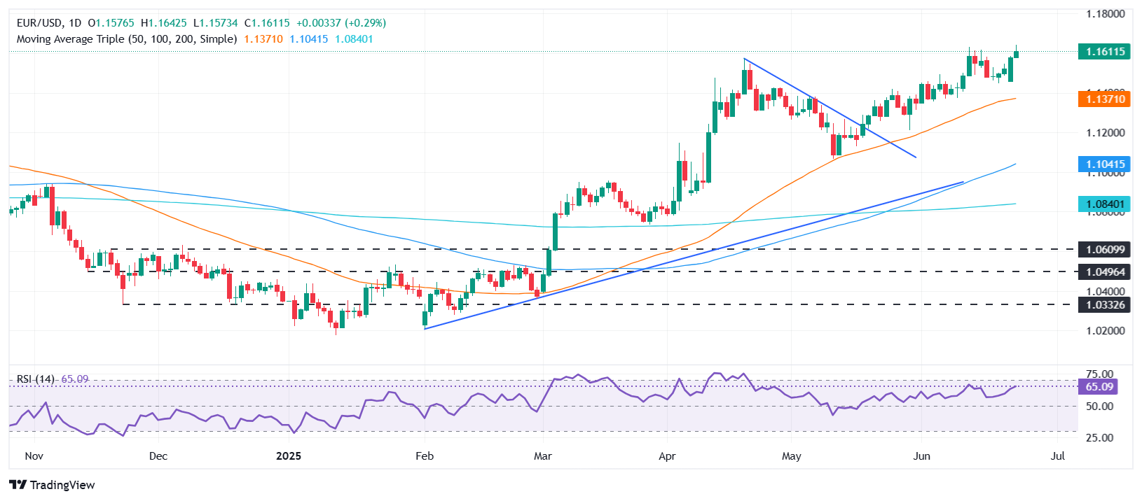欧元/美元连续第四天上涨,涨幅为0.39%,尽管交易价格低于年内高点1.1641,受益于美元疲软,因中东冲突的缓和。