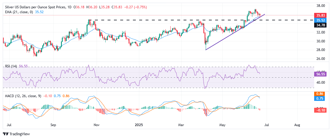 白银(XAG/USD)在周二的美盘时段逆转走势,此前大部分时间从日内高点 36.20 美元回落。