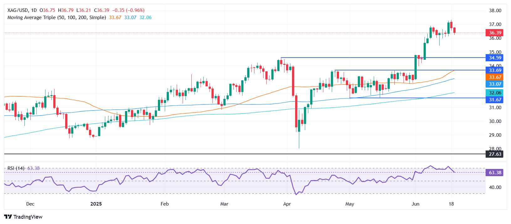 白银价格预测:白银/美元因美元走强跌破36.50美元