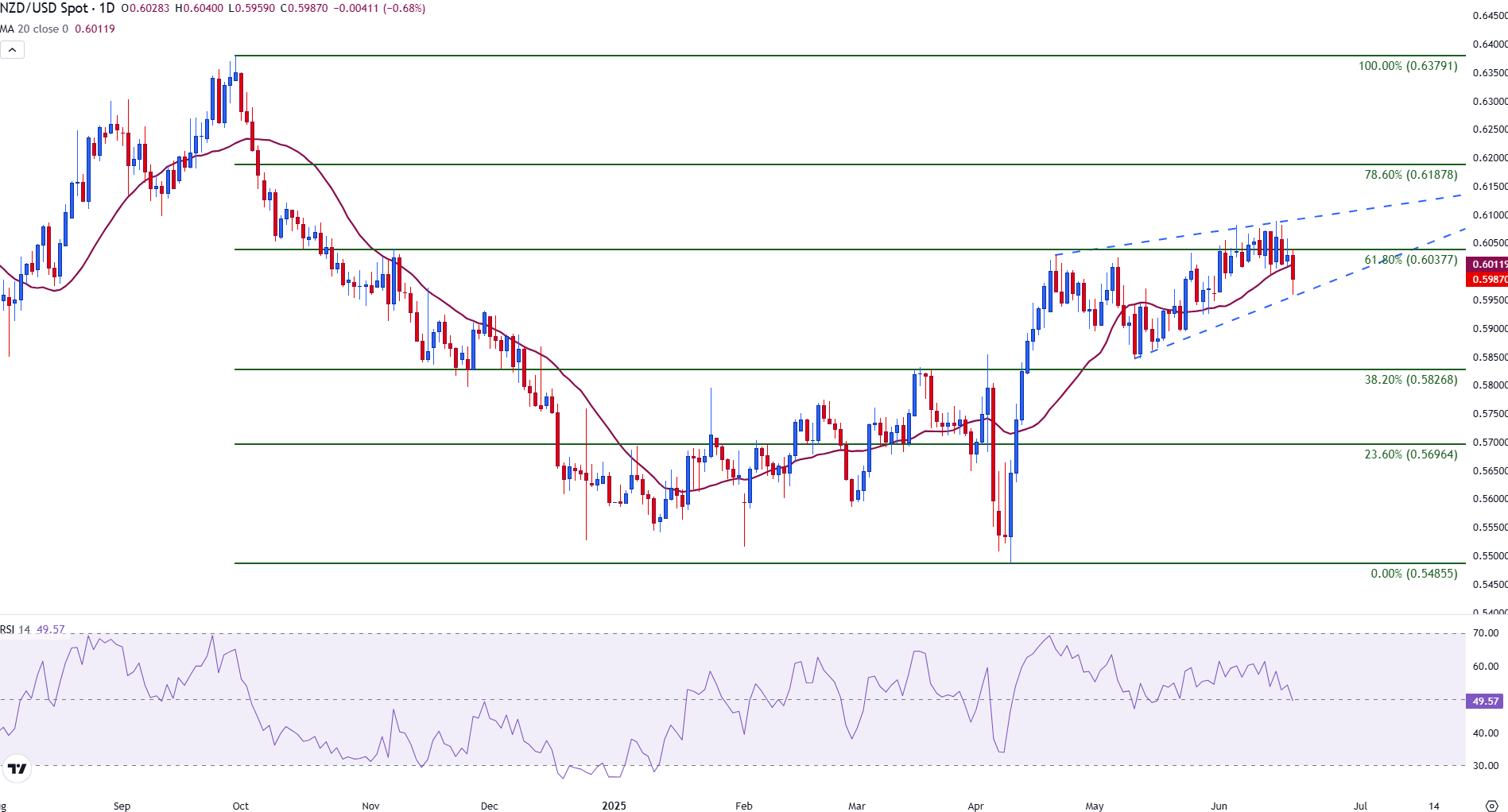 周四,新西兰元(NZD)继续承压,纽元/美元滑向0.5980,因为美元继续上涨。该货币对跌破了0.6012的20日简单移动均线(SMA)和上升楔形模式的下边缘,这一走势表明看涨动能已经减弱