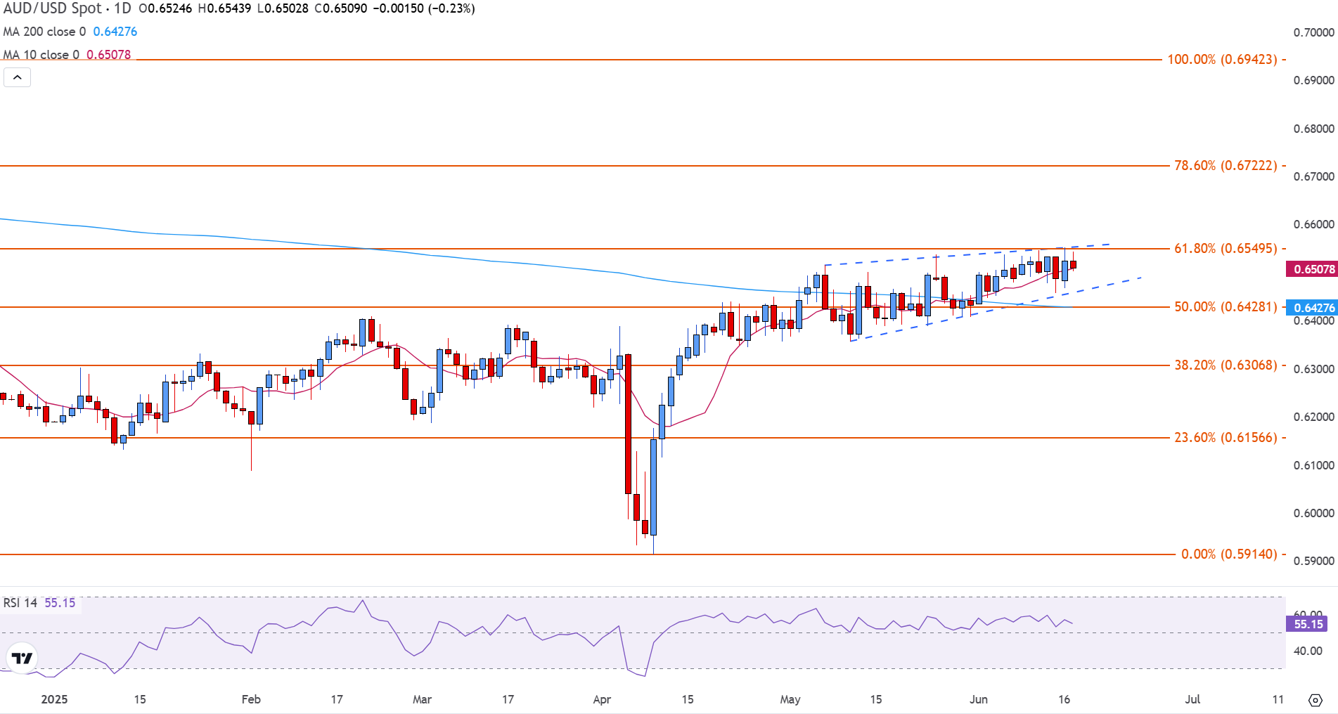 周二,随着交易者消化美国零售销售数据的混合信号,关注不断上升的地缘政治紧张局势,并为周三美联储(Fed)政策决策和经济预测摘要做准备,该货币对回落至0.6500附近