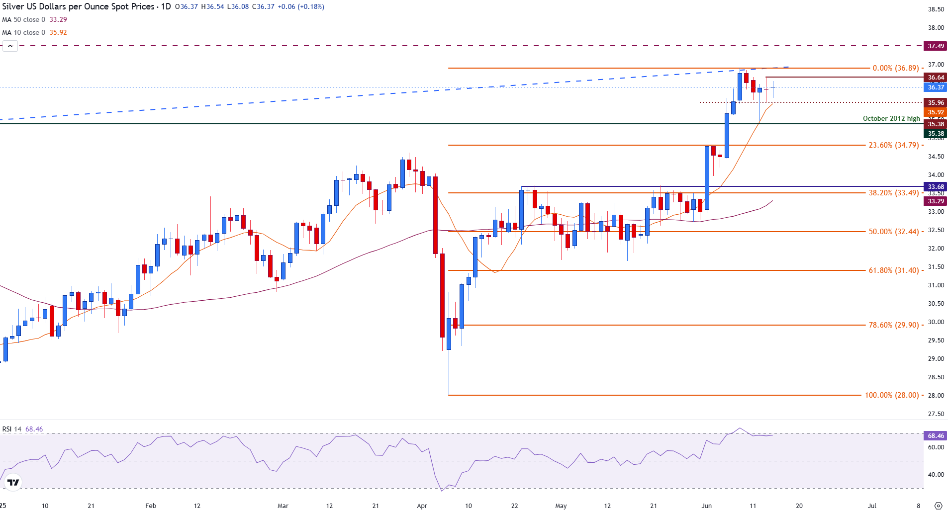 白银价格在周一停滞在 36.00 美元以上,经过几周的强劲反弹后,看涨动能出现喘息。